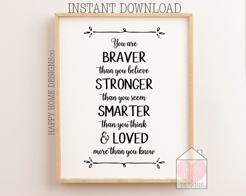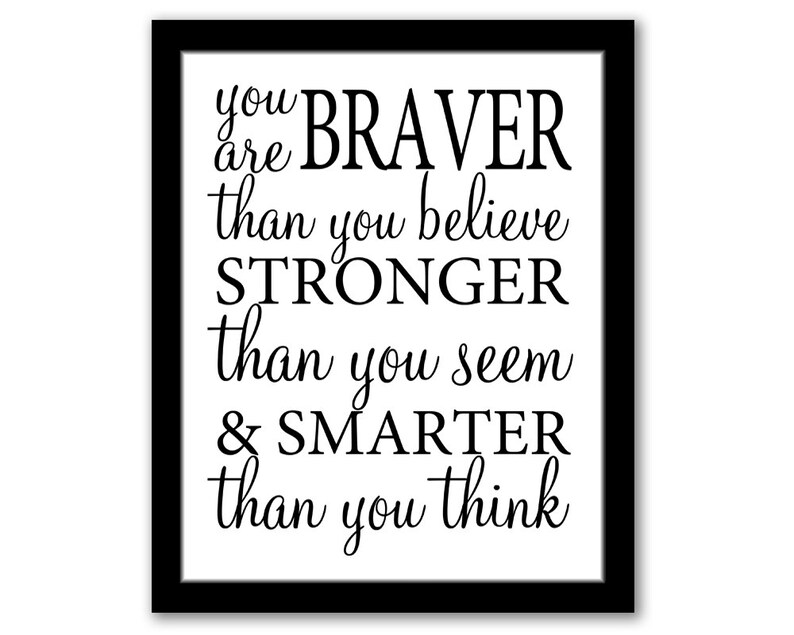 . Always remember you are braver than you believe, stronger than you seem, smarter than you think, and loved more than you know Milne) Please do not underestimate your capacity to be braver than you ever thought possible